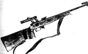 Трехлинейный карабин (укороченный вариант винтовки) впервые появился в 1907 году для вооружения кавалеристов. Немного модернизировался в 1938 году, а в 1944 году к нему был разработан неотъемный откидной штык. Эти карабины с отборными стволами или изготовленные на заказ обеспечивали кучность боя 5х4 см на дистанции 100 метров обычным патроном. Поэтому на них нередко ставили оптический прицел ПУ и применяли для работы в разведдиверсионных группах (фото 38). Короткие карабины оказались практичными, маневренными и удобными для работы в условиях населенных пунктов и поэтому применялись в НКВД, КГБ и милиции для обезвреживания вооруженных и особо опасных "клиентов". В обиходе короткий карабин с оптическим прицелом оказался настолько практичным, что продолжал применяться даже после вооружения вышеназванных ведомств хорошими, но чрезмерно Длинными для "полицейской" работы автоматическими винтовками СВД.